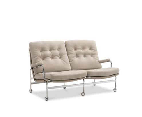 這款優雅的雙人座沙發可搭配 1969 年 Bruno Mathsson 設計的原版 Karin 扶手椅。本款沙發秉持經典系列傳統,舒適的填充靠墊可置於鍍鉻框架和支撐網上。除了沙發和原創椅子外,Karin 系列也有腳凳及桌子。