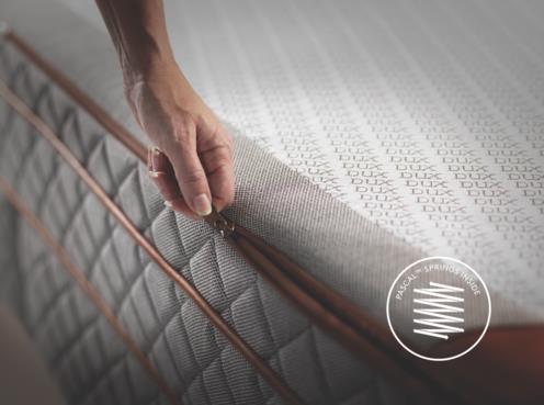 搭載 Pascal 系統的 DUX 寢床,其頂層能解開,內含六個可互換的彈簧袋;每側三個。 可根據您的體型、尺寸和需求來安排彈簧袋。